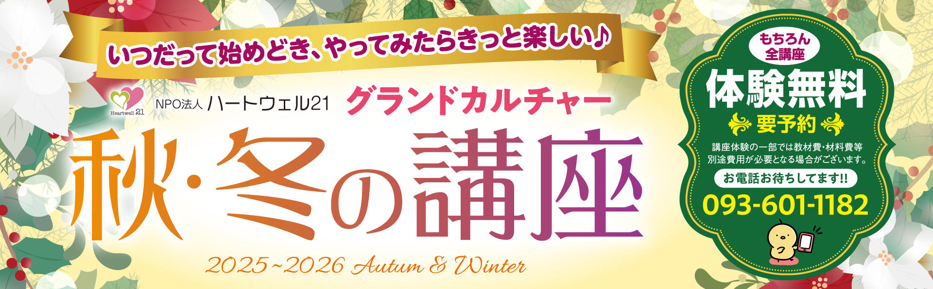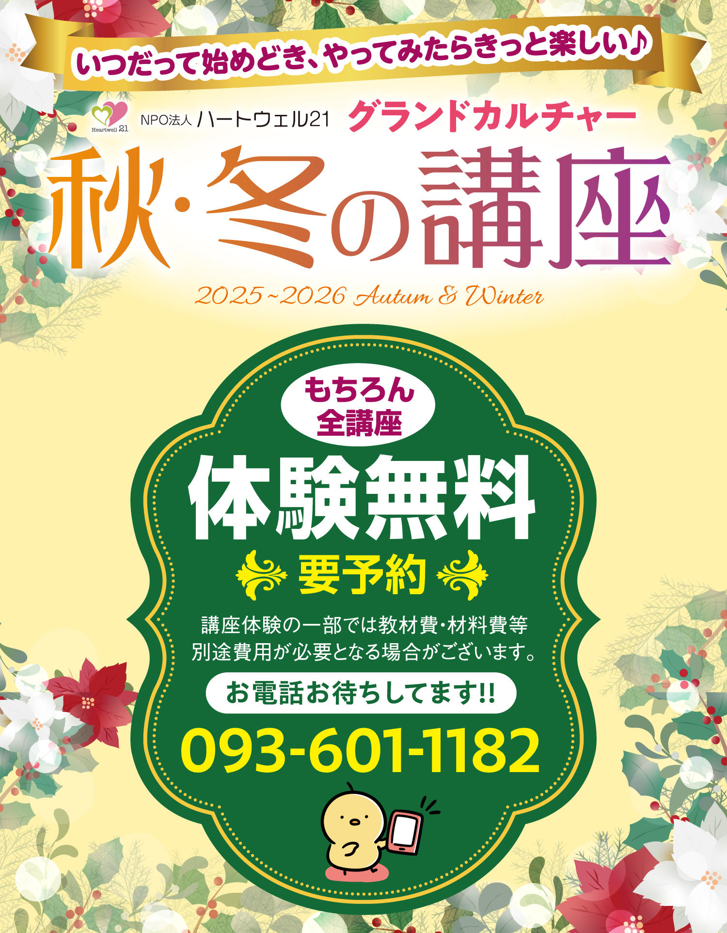 - 講座によっては、教材費がかかる場合があります。